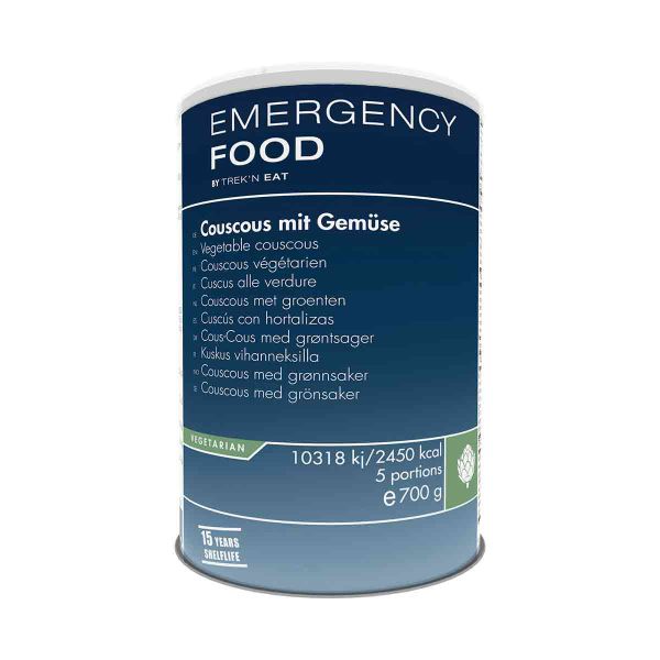 La sua durata di conservazione di 15 anni dalla produzione permette di conservarlo e utilizzarlo al momento opportuno. Questo cous cous vegetariano è ideale per chi cerca l'autonomia alimentare. È stato preparato da Trek'n Eat, un marchio di pasti liofilizzati che ha sviluppato una gamma "Emergency Food".